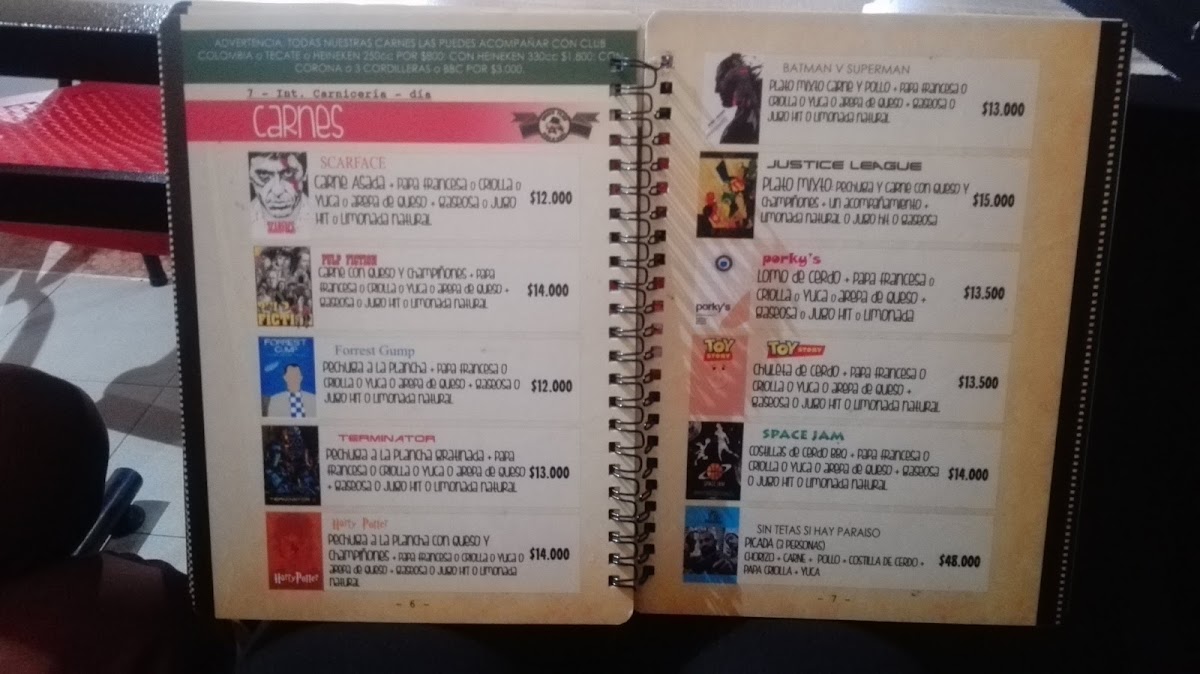 - Scareface: Juicy carne a la brasa served with a refreshing salad and drink for COP 20,800.